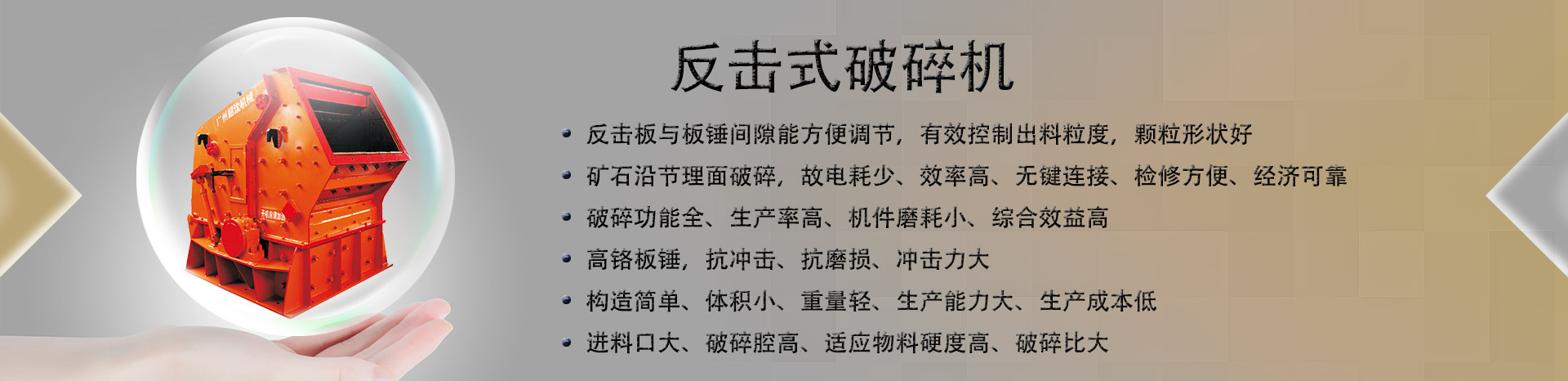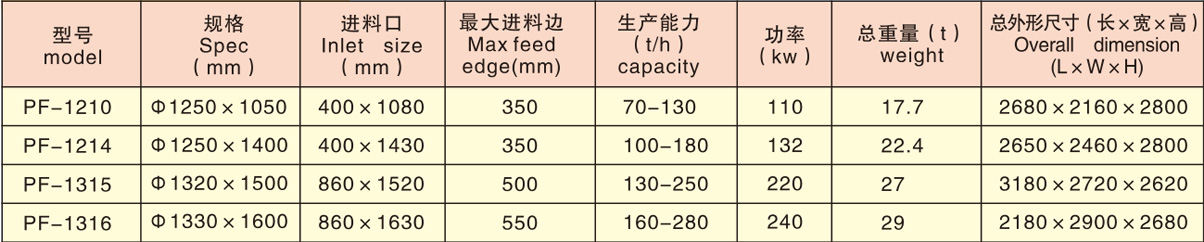 破碎功能全、生產(chǎn)率高、機(jī)件磨耗小、綜合效益高;