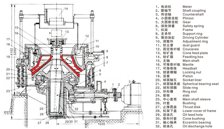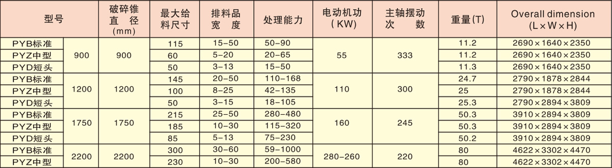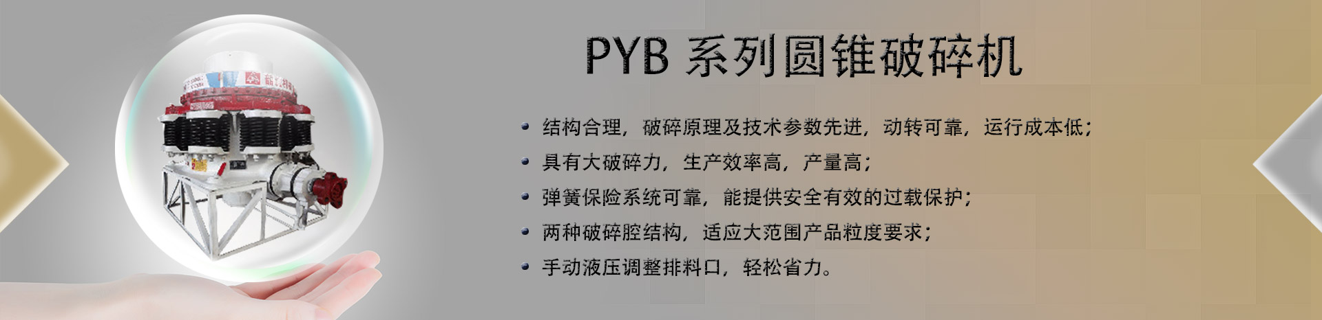 PYB系列圓錐破碎機適用于破碎中等以上硬度的各種礦石和巖石。具有結(jié)構(gòu)可靠,生產(chǎn)效率高,調(diào)整方便,使用經(jīng)濟等特點。其彈簧保險系統(tǒng)是過載保護裝置,可使金屬異物通過破碎腔而不危害機器,采用干油或水兩種密封形式,使石粉與潤滑油隔離,保證可靠工作。