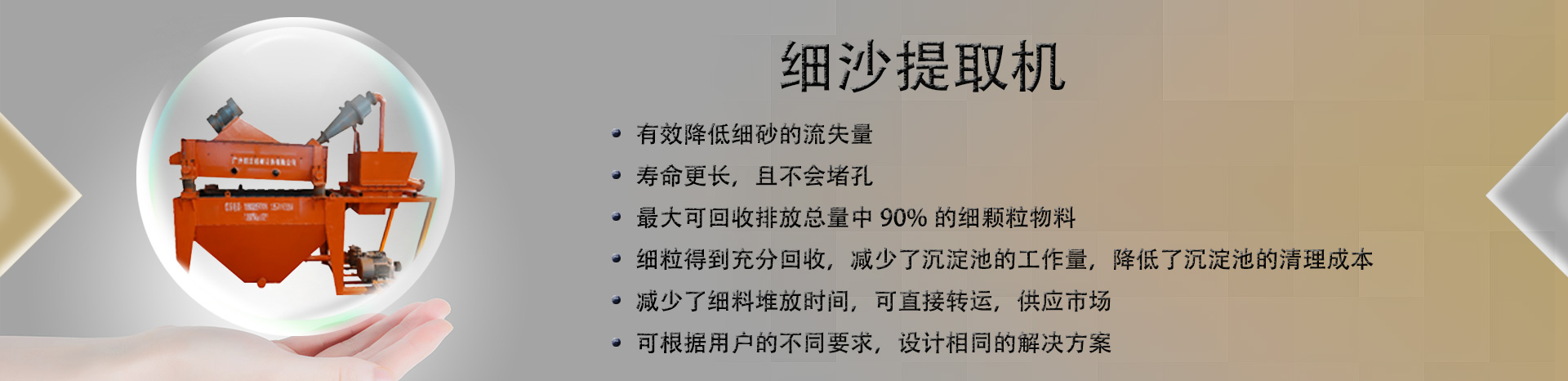 在水洗法制砂生產線上,經過洗沙機脫水過程時,會有一部分砂尤其是<0.63mm的細沙顆粒會被水流帶走,流量可達9-16%。一方面降低了砂的總量,另一方面也影響了砂的質量,同時也影響了砂級配,使砂的級配斷缺,增加了水泥的用量,降低了混凝土標號。本機在不增加含泥量的前提下能把其中的90%以上被水流帶走的細砂顆粒重新收集起來,既可以摻入成品砂堆達到砂的級配,也可以單獨存放、使用,作為高檔裝飾用砂,同時減少了沉淀池的工作量,降低了沉淀池的清理成本。